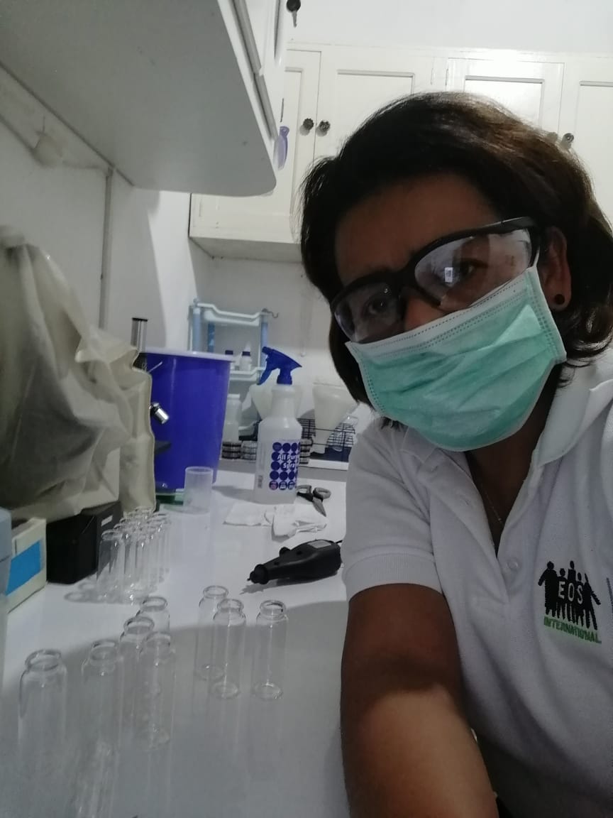 Oneida first started working with EOS as a Circuit Rider Technician, visiting rural communities to measure the water quality and provide technical assistance to ensure the communities’ water system is working properly. Then she moved into her current role working with 21 schools providing water, sanitation, and hygiene education as well as water treatment and filtrations services to the students and teachers ensuring safe drinking water. Oneida loves her job helping her community, and making a difference in people’s lives. However, the pandemic has changed her job quite significantly like it has for most of the world.